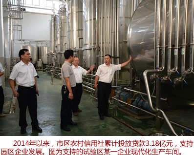 同时,一般贷款3-4天完成审批,2014年1-9月累计发放贷款3.13亿元。支撑城乡一体化扶植。(一)出力支撑试验区内园区根本设备扶植。
